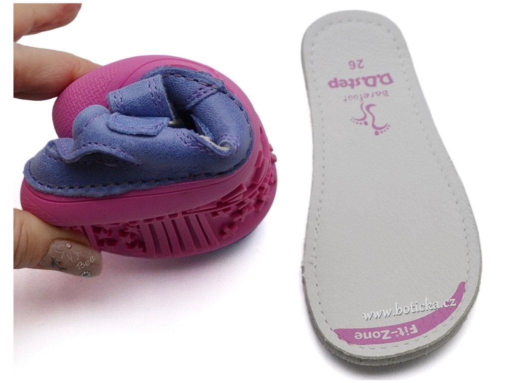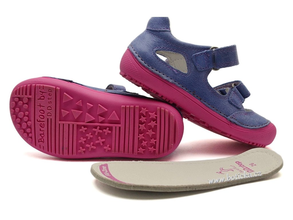 Dětské barefoot sandále značky DDStep vzor 063 umožňuje, aby všechny svaly nohou, byly zapojeny do chůze, stejně jako při bosé chůzi. Obuv vyniká extrémně flexibilní podešví. Obuv je lehká díky použitým technologiím 3D šití. S flexibilní podešví, pevným opatkem, kvalitní vyjímatelnou koženou stélkou pro lepší určení velikosti a špičkou chráněnou proti okopu. Zapínání na dva suché zipy. Vhodné pro střední a širší nožičky, nevhodné pro děti se štíhlými chodidly.
