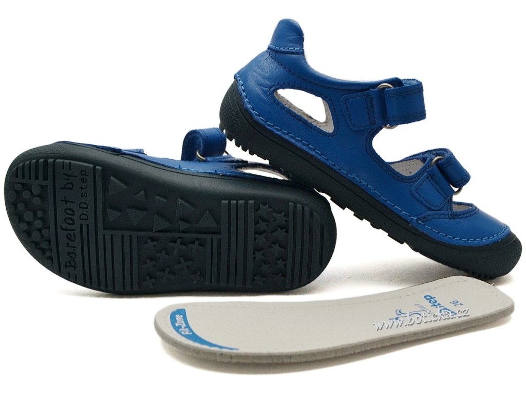 Dětské barefoot sandále značky DDStep vzor 063 umožňuje, aby všechny svaly nohou, byly zapojeny do chůze, stejně jako při bosé chůzi. Obuv vyniká extrémně flexibilní podešví. Obuv je lehká díky použitým technologiím 3D šití. S flexibilní podešví, pevným opatkem, kvalitní vyjímatelnou koženou stélkou pro lepší určení velikosti a špičkou chráněnou proti okopu. Zapínání na dva suché zipy. Vhodné pro střední a širší nožičky, nevhodné pro děti se štíhlými chodidly.