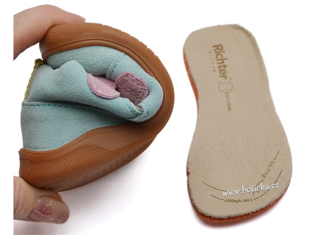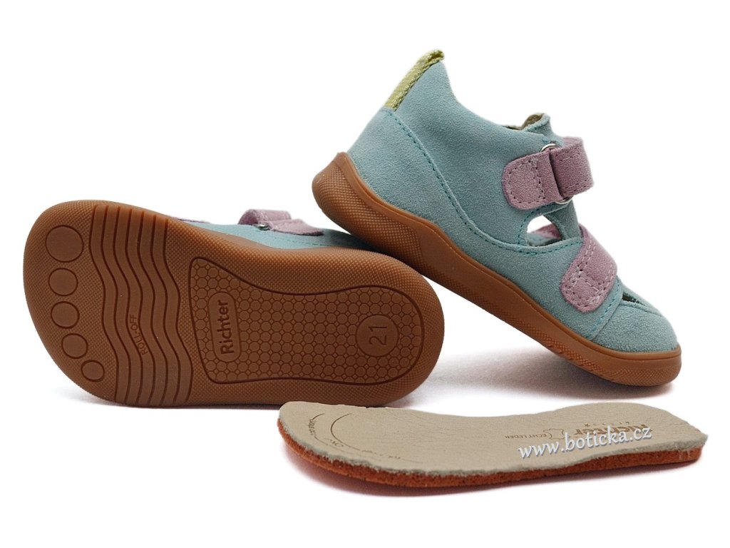 Kožené barefoot sandály rakouské značky Richter, podešev s prostornou špicí, vyjímatelná měkká kožená stélka, velmi lehké, patentovaná flexibilní podešev Roll-Off® podporuje rozvoj chůze u dětí, lehce zpevněný opatek - barefoot kompromis. Teplotně jsou vhodné od 20°C v závislosti na individuální tělesné termoregulaci dítěte.
