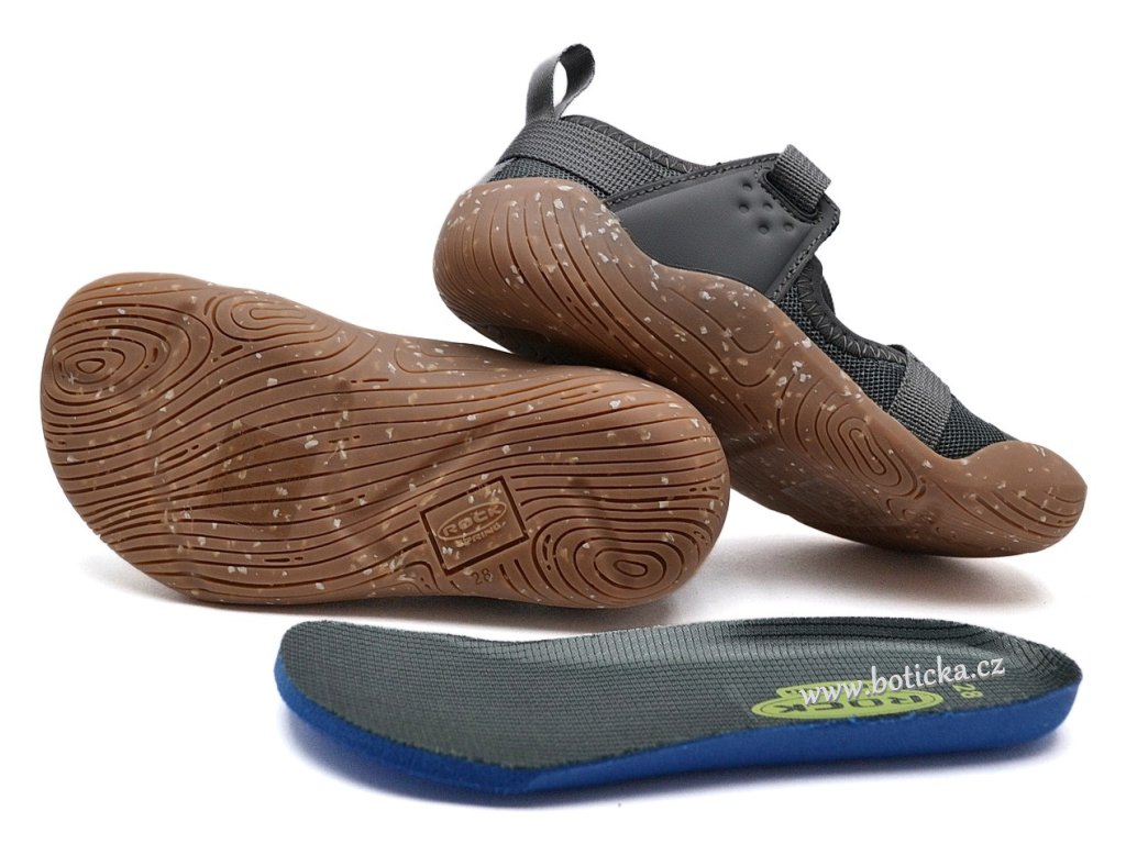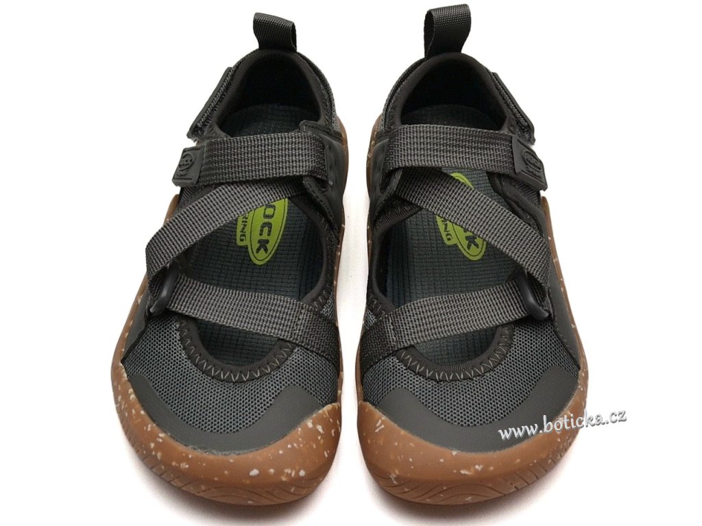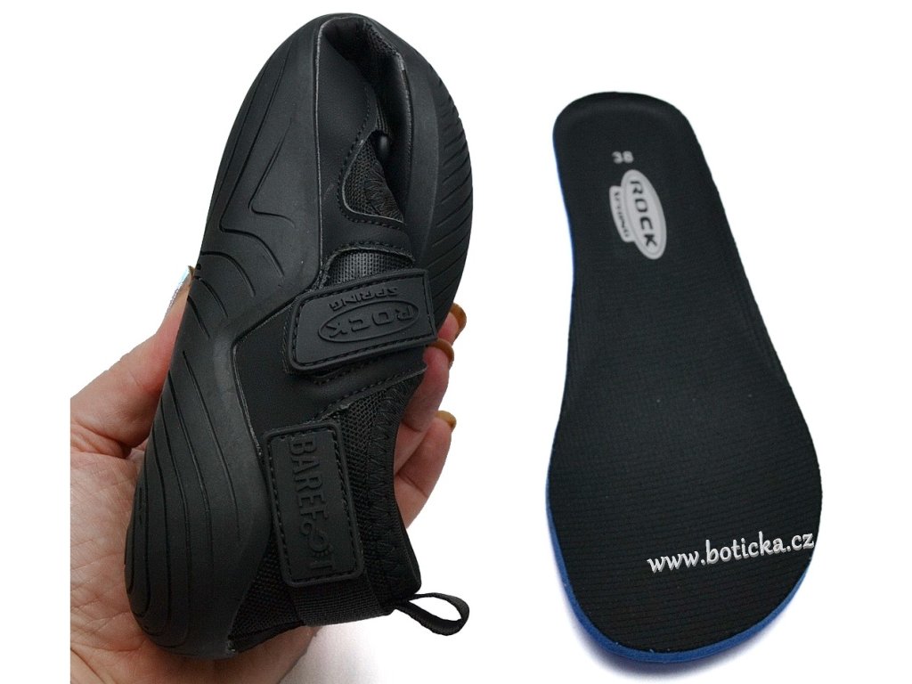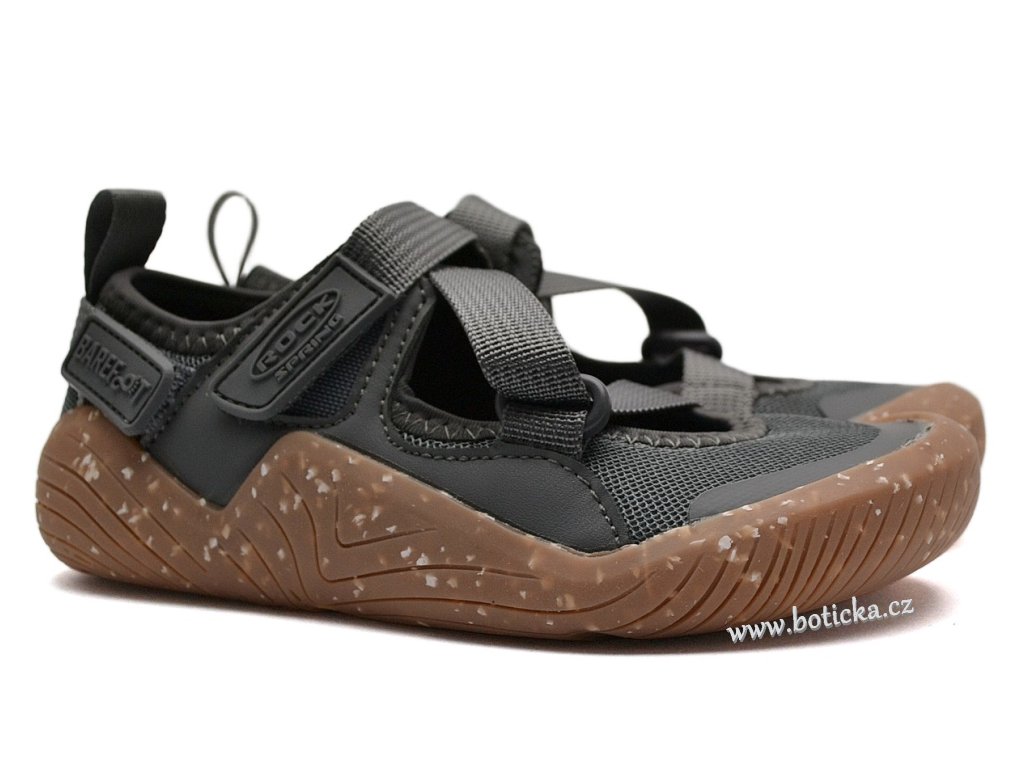 Sportovní barefoot sandály Rockspring, tzv. letní trek, vhodné pro letní aktivity. Podešve jsou protiskluzové, pružné a velmi lehké. Pro snadnější nazouvání je obuv opatřena rychloupínacími suchými zipy. sandály mají vyjímatelnou textilní stélku a nemají zpevněný opatek.