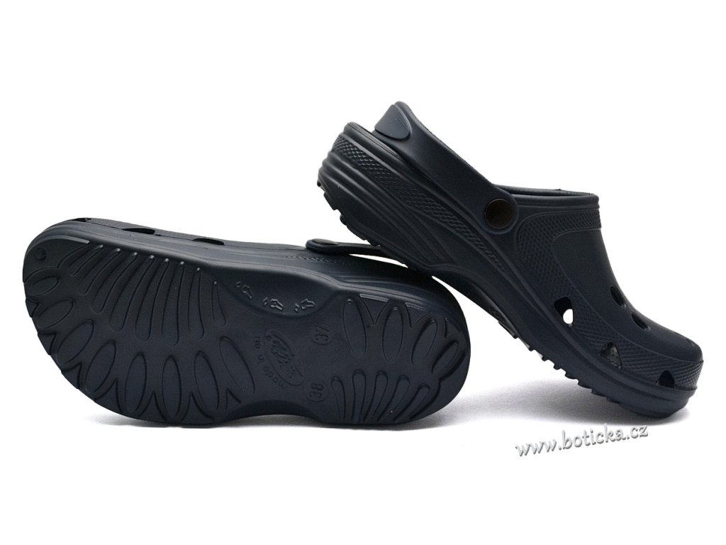 Plážová obuv / nazouváky ve stylu "crocs", s jistícím páskem přes patu, vhodné k bazénu či na koupaliště, velmi lehké. Tyto nazouvací botičky nesuplují bačkůrky ani sandále.
