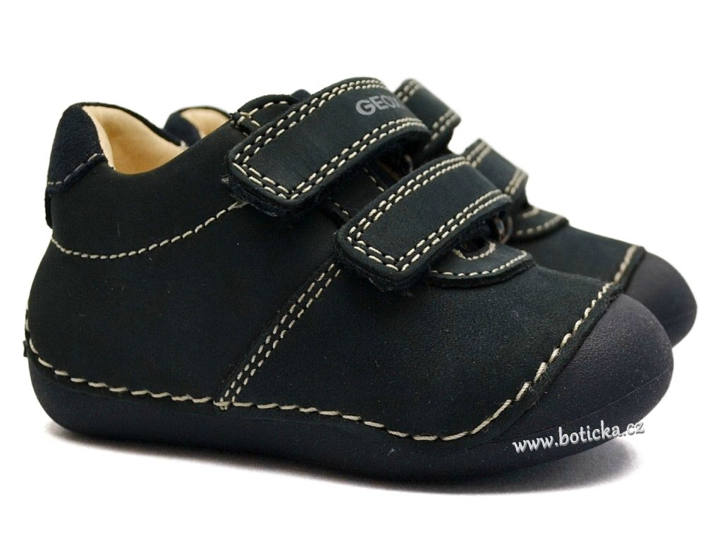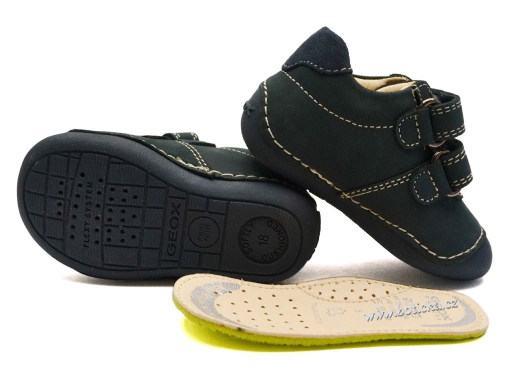 Dětské boty GEOX vhodné již od prvních krůčků. Lehké, pohodlné, s patentem "dýchající podešve" - perforovaná podešev, která propouští páru ven, ale vlhko dovnitř nepustí. Výhodou je ergonomická, měkká, vyjímatelná, kožená stélka. Podešev s flexi systémem. Zapínání na suchý zip. Obuv chrání okopová špička. Botky mají zpevněný opatek. Vhodné pro každodenní nošení od jara do podzimu, v teplotním rozmezí cca 10-20°C podle vnitřní termoregulace dítěte.