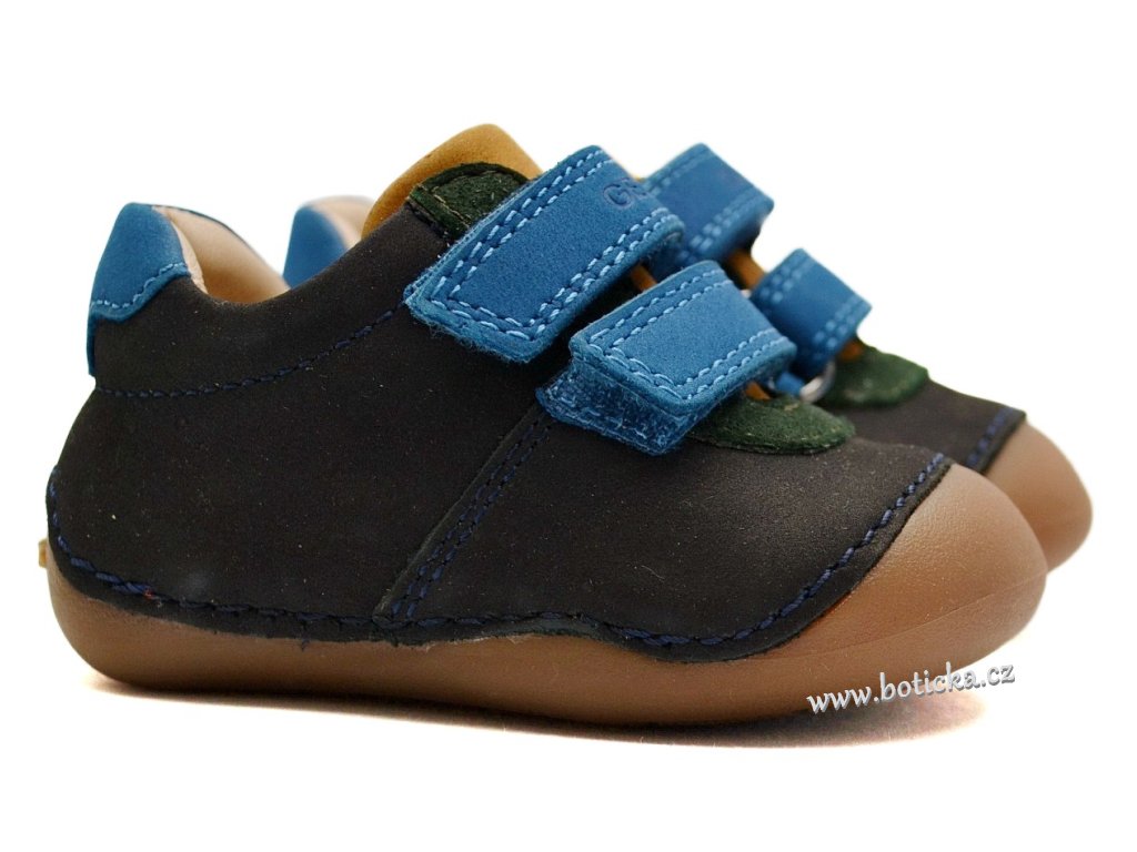 Dětské boty GEOX vhodné již od prvních krůčků. Lehké, pohodlné, s patentem "dýchající podešve" - perforovaná podešev, která propouští páru ven, ale vlhko dovnitř nepustí. Výhodou je ergonomická, měkká, vyjímatelná, kožená stélka. Podešev s flexi systémem. Zapínání na suchý zip. Obuv chrání okopová špička. Botky mají zpevněný opatek. Vhodné pro každodenní nošení od jara do podzimu, v teplotním rozmezí cca 10-20°C podle vnitřní termoregulace dítěte.