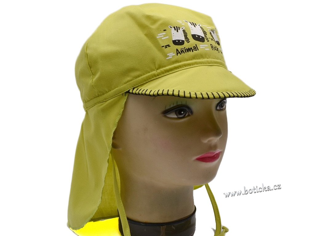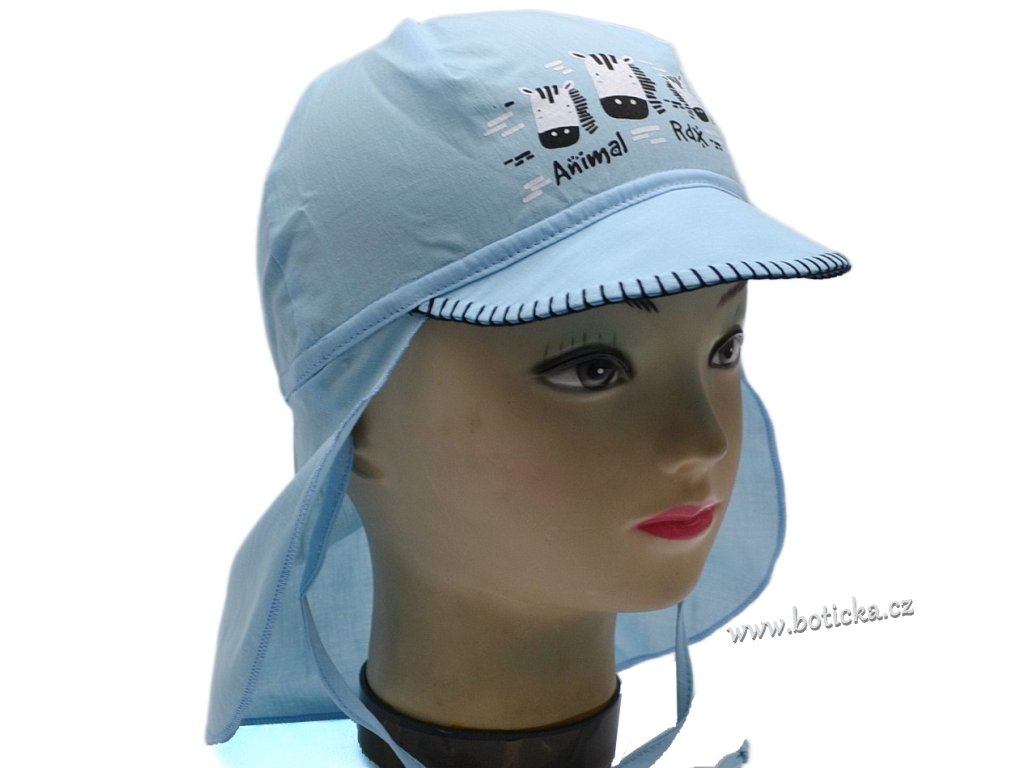 Lehoučká plátěná dětská kšiltovka s plachetkou pro ochranu krku před spálením. Tkaničky pro zavázání pod krkem. Pro každý letní den ve městě i u vody.