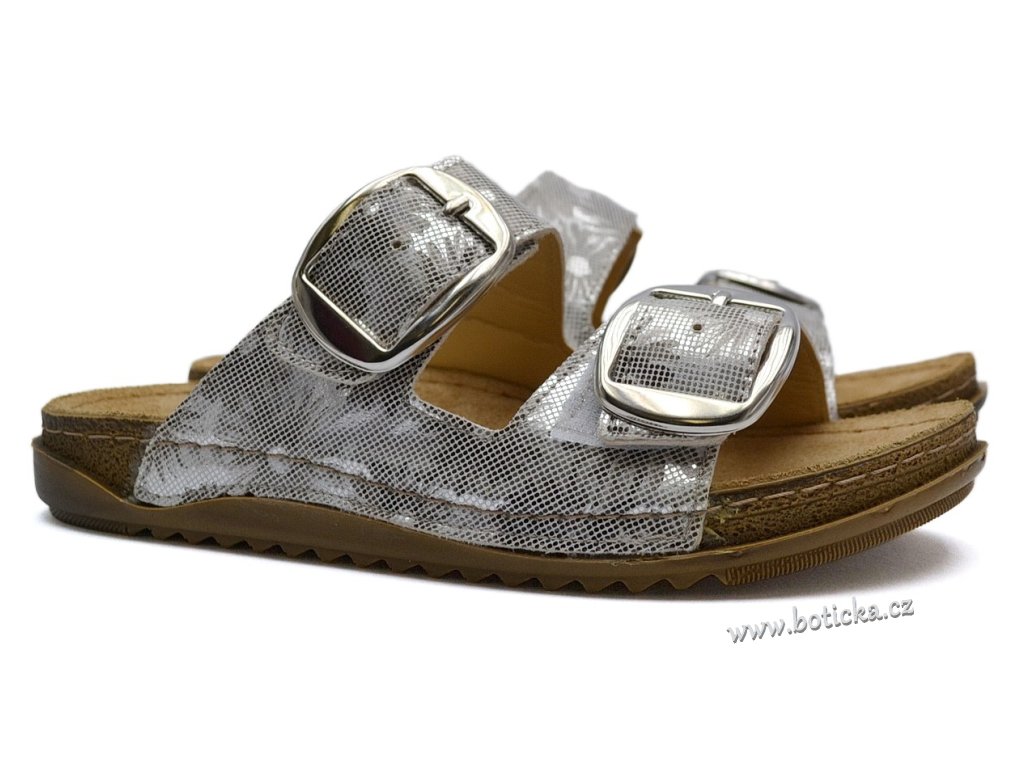 Pantofle EFFE TRE 213615-120-925-503 stříbrné květy
