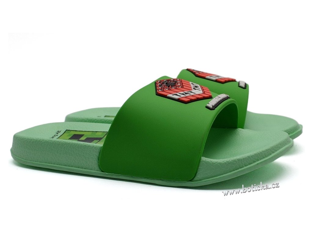 Dětské pantofle s motivem Minecraft. Velmi lehké a příjemné na došlap. Střihem vhodné na střední a mírně širší nožičky, nevhodné pro štíhlá chodidla.