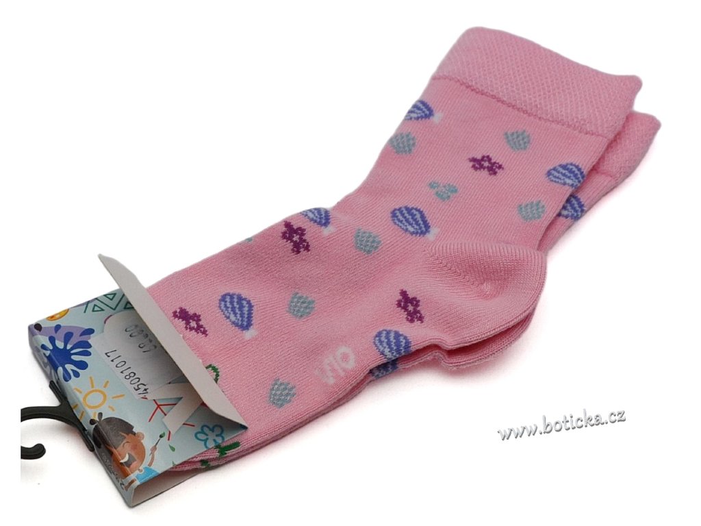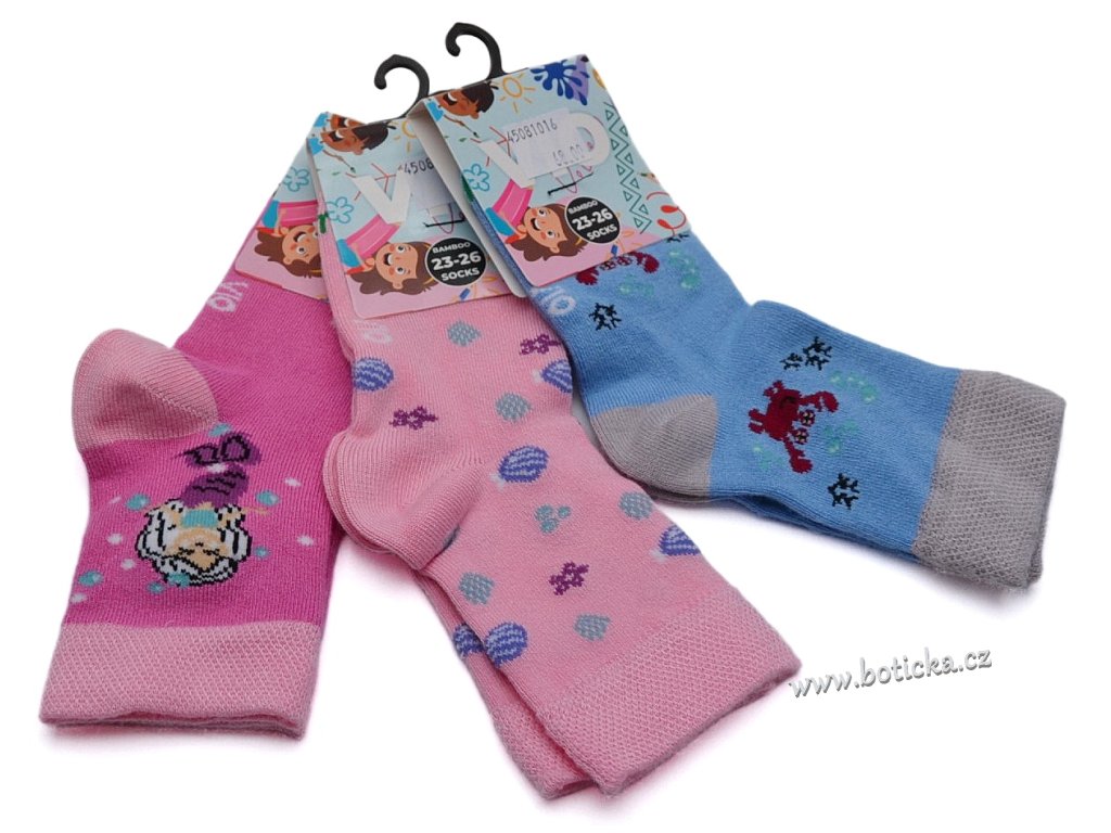 Dětské ponožky z antibakteriální bambusové příze s plochými švy špice (bez otlaků), zesílenými zátěžovými částmi a nestahujícím, příjemně volným lemem.