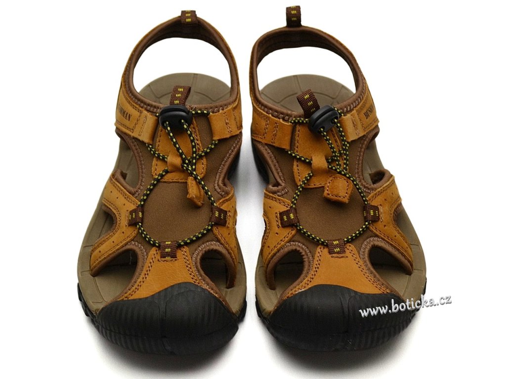 Dětské kožené sandále s krytou špičkou, nazouvací, krásně široké. Krytá špička chrání před úrazem. Utažení přes nárt. Syntetická stélka