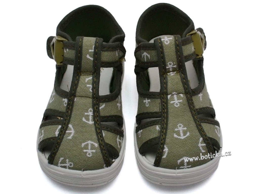 Textilní chlapecké sandálky pro volný čas, botky mají zpevněný opatek. Výhodou je kožená stélka, vhodné pro střední nožičku bez vyššího nártu. Zapínání na přezku pro lepší dotažení okolo kotníku.