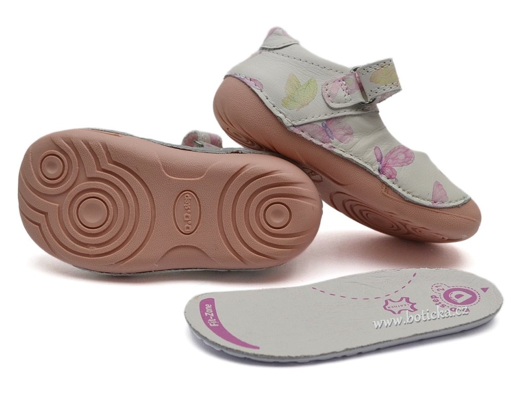 Dívčí kožené vycházkové sandálky / balerínky s krásně ohebnou podešví, s anatomicky tvarovanou koženou stélkou a mírně zpevněným opatkem, okopová špička ochrání botičky před okopáním, střední střih, vhodné pro střední nožičky bez vysokého nártu