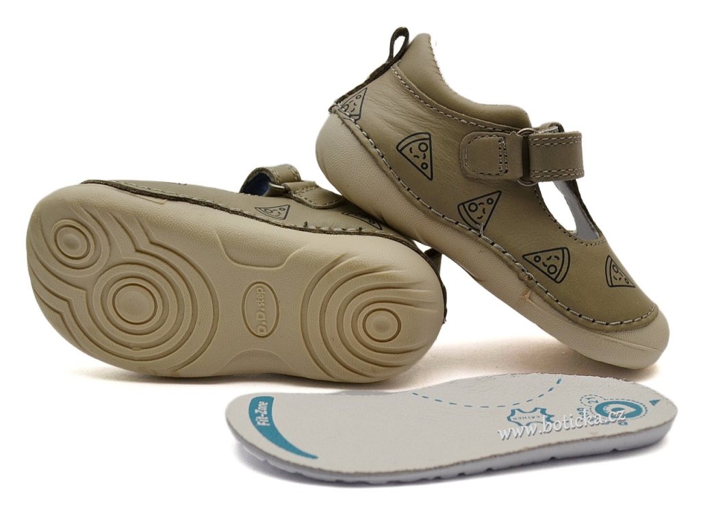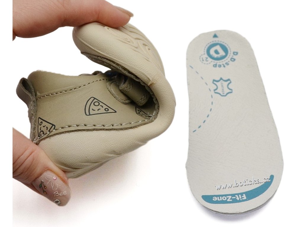Dětské kotníkové kožené lehké vycházkové sandálky s krásně ohebnou podešví, s anatomicky tvarovanou koženou stélkou a mírně zpevněným opatkem, okopová špička ochrání botičky před okopáním, střední střih, vhodné pro střední nožičky bez vysokého nártu