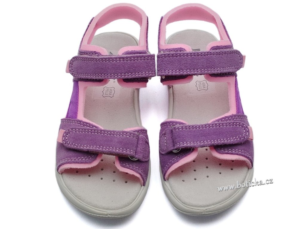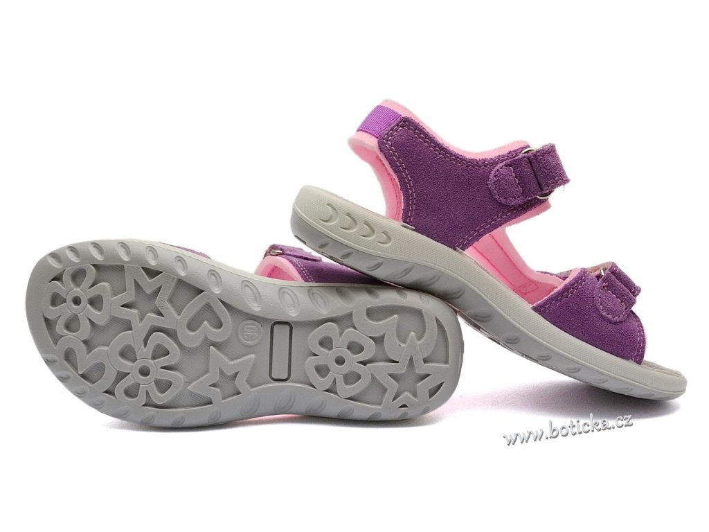 Krásné dívčí vycházkové sandály s otevřenou špičkou a zapínáním na suchý zip, nastavitelný nárt, velmi lehké, ohebná podešev. Made in Tunis