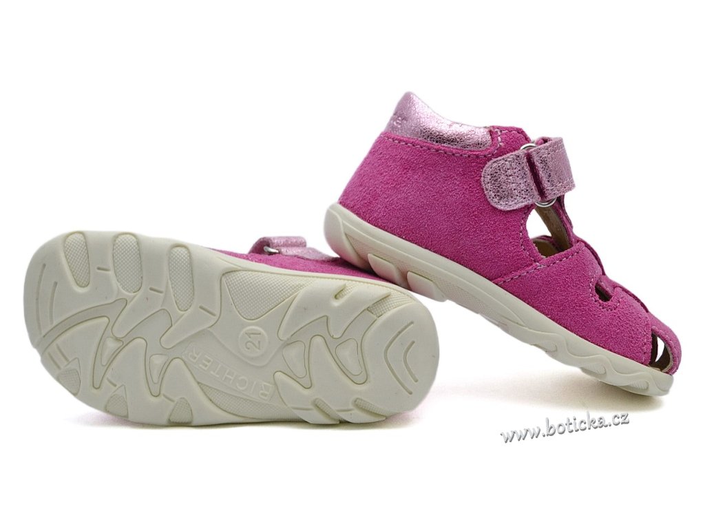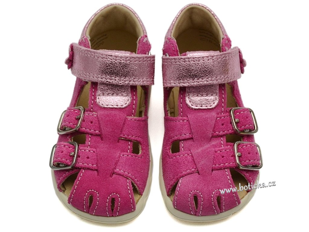 Velmi oblíbené dětské vycházkové sandálky s koženou stélkou, nastavitelným nártem, ohebné, se zpevněným opatkem, díky kryté špičce chrání dětské prstíčky před zraněním