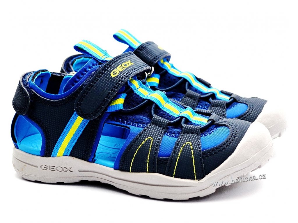 Dětské letní boty italské značky GEOX, vhodné k vodě, do přírody a na všechny letní aktivity. Sandály lze prát a to na 30°C v ruce. Pokud přijdou boty do kontaktu se slanou (mořskou) vodou boty propláchněte čistou vodou, aby sůl obuv nepoškodila. Okopová špička chrání prsty před poraněním a suchý zip na nártu i za patou umožní perfektní fixaci boty k dětské noze. Podešev je pružná a neklouzavá, s flexi systémem. Made in Myanmar.