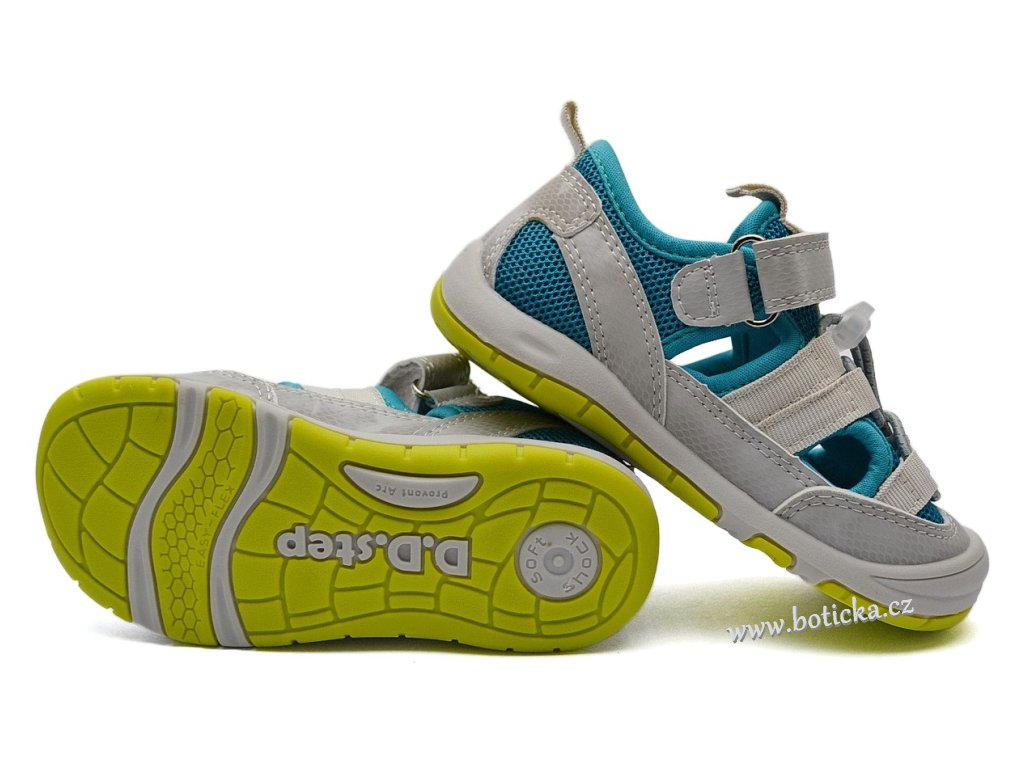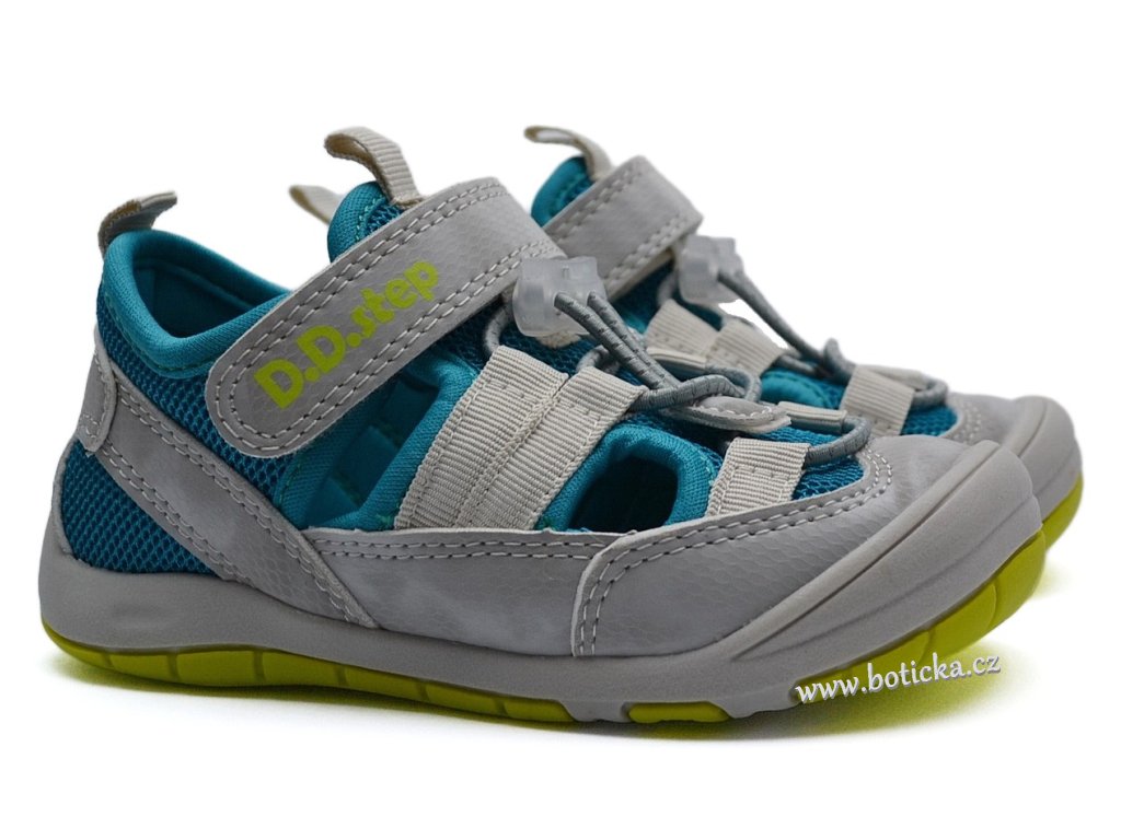 Dětské sandále s krytou špičkou, tzv. trekové sandále, se zapínáním na suchý zip. Velmi lehké a ohebné. Tyto sandálky lze brát i jako barefoot kompromis. Jen velmi lehce zpevněný opatek a kulatá prostorná špička. Zapínání na suchý zip. Krytá špička chrání dětské prstíky před úrazem a botičky před rychlým opotřebením. Pružná gumička na stažení přes nárt umožňuje tyto botičky nosit i dětem s užším chodidlem, ovšem nejsou vhodné pro úzké paty.
