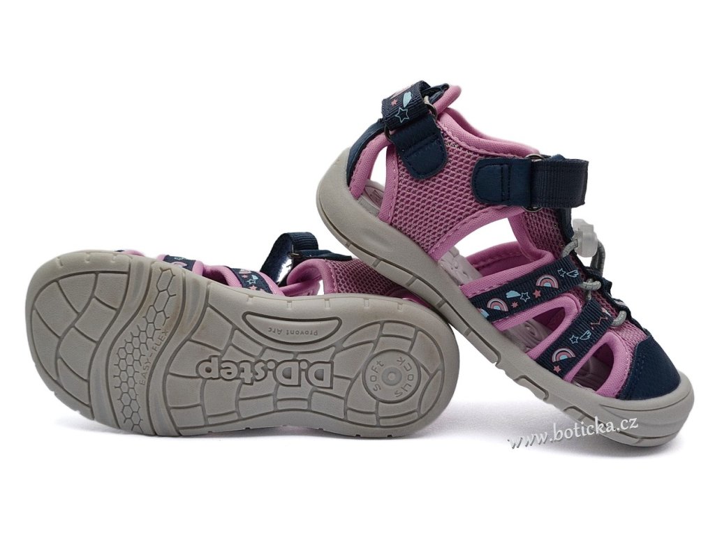 Dětské sandále s krytou špičkou, tzv. trekové sandále, se zapínáním na suchý zip + možné utažení přes nárt. Velmi lehké a ohebné. Tyto sandálky lze brát i jako barefoot kompromis. Nastavitelný pásek přes patu a kulatá prostorná špička. Zapínání na suchý zip. Krytá špička chrání dětské prstíky před úrazem a botičky před rychlým opotřebením.