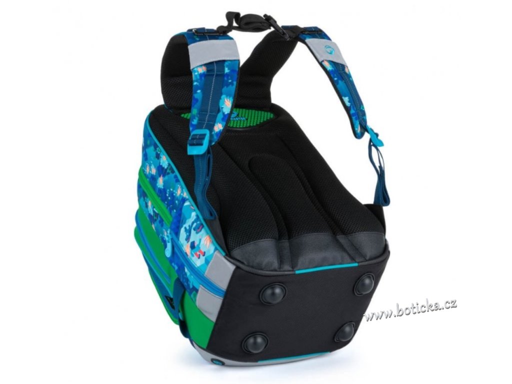 - Zádová část batohu je ergonomicky tvarovaná a má zdravotní posudek. Součástí zádového systému je vyjímatelný hliníkový rám pro podporu správného držení těla. Díky tomu nasazený batoh správně přiléhá na záda.