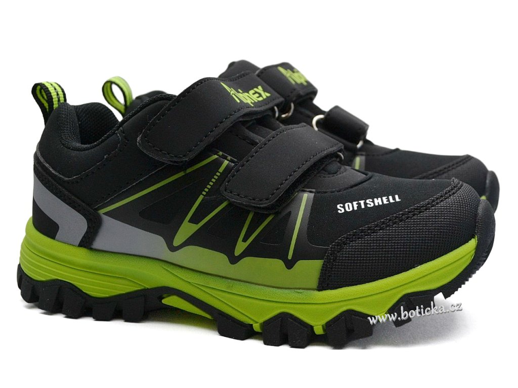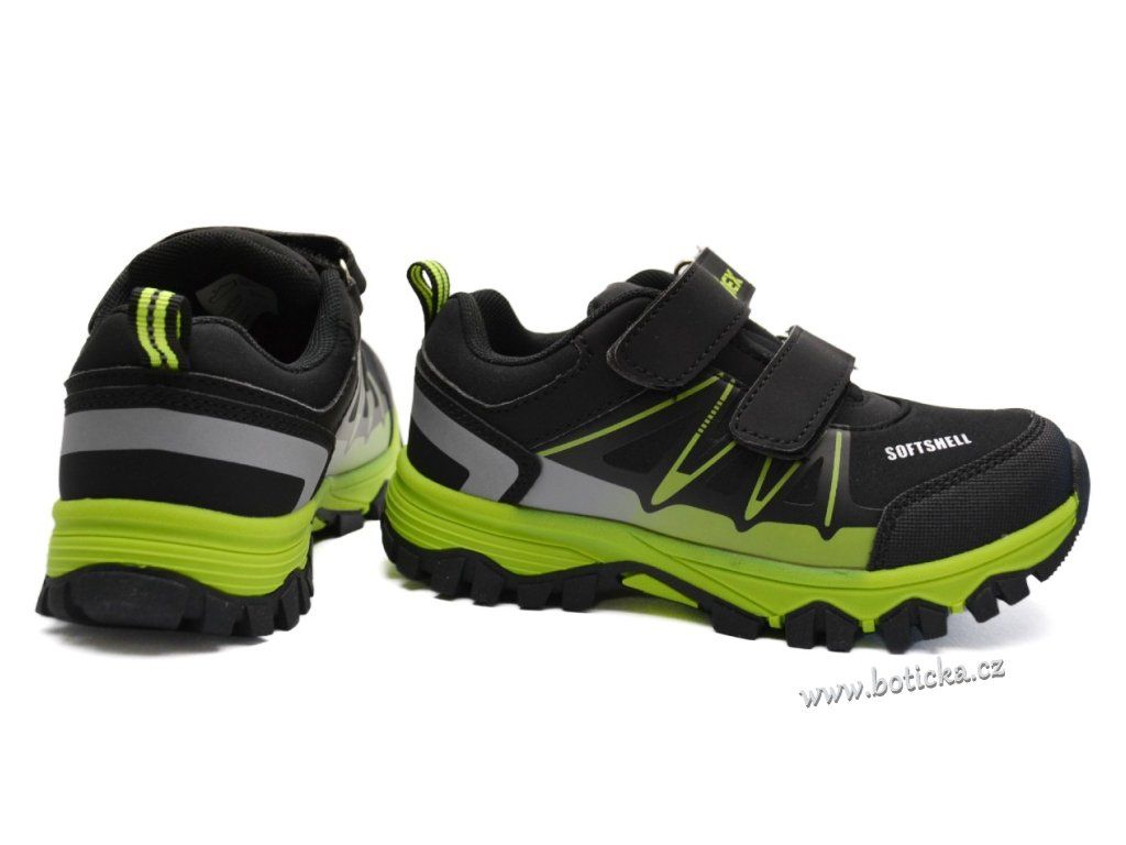 Chlapecká softshellová rekreační obuv se zapínáním na suchý zip, střední střih, vhodné pro střední a mírně širší nožičky. Lehké díky phylonové podešvi. U softshellu je klasický povrch nahrazen měkkým vodoodpudivým polyuretanovým povrchem, do kterého se dešťové kapky tak snadno nevsáknou a sníh na něm neulpívá. SoftShell je díky povrchové úpravě také částečně větruodolný a to i v případě, kdy není jeho součástí membrána.