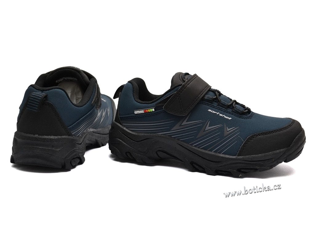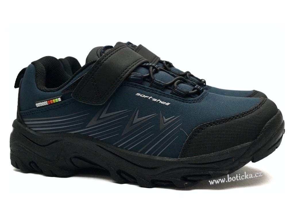 Dětská softshellová rekreační obuv se zapínáním na suchý zip, střední střih, vhodné pro střední a mírně širší nožičky. U softshellu je klasický povrch nahrazen měkkým vodoodpudivým polyuretanovým povrchem, do kterého se dešťové kapky tak snadno nevsáknou a sníh na něm neulpívá. SoftShell je díky povrchové úpravě také částečně větruodolný a to i v případě, kdy není jeho součástí membrána.