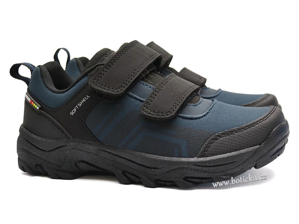 Dětská softshellová rekreační obuv se zapínáním na suchý zip, střední střih, vhodné pro střední a mírně širší nožičky. U softshellu je klasický povrch nahrazen měkkým vodoodpudivým polyuretanovým povrchem, do kterého se dešťové kapky tak snadno nevsáknou a sníh na něm neulpívá. SoftShell je díky povrchové úpravě také částečně větruodolný a to i v případě, kdy není jeho součástí membrána.