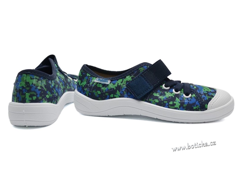 Nízké tenisky vhodné pro volný čas, které odpovídají požadavkům a nárokům na zdravé obutí Vašeho dítěte. Nízký klínovitý podpatek, boky stabilizující chodidlo a široké špičky pro volný pohyb prstů, chráněné proti okopání. Tenisky jsou se zapínáním na suchý zip. Střední střih, vhodné pro štíhlé a střední nožičky bez vyššího nártu.