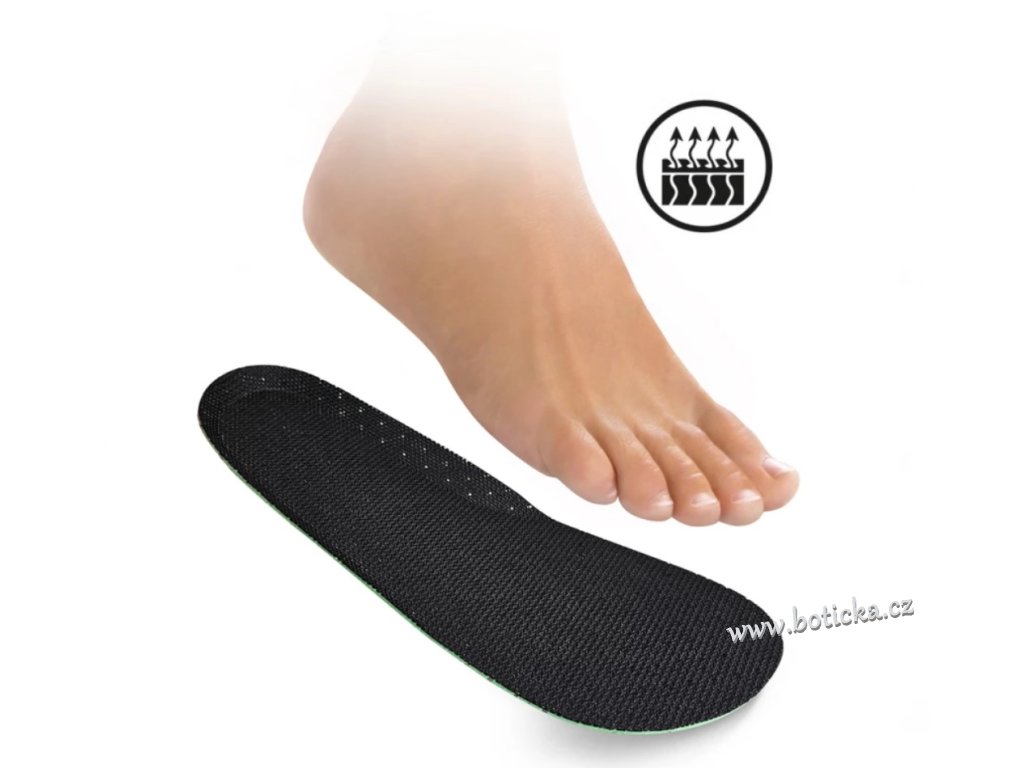 Stélky disponují rozšířenou přední částí, která tak umožňuje využití právě pro typ boty barefoot. Výrazná perforace spodní části zajišťuje maximální prodyšnost a celkovou termoregulaci v botě.