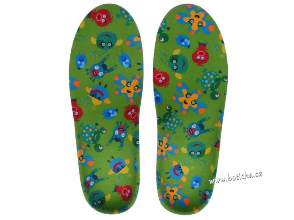 Tyto dětské vložky jsou určeny především do obuvi, která má nedostatečně tvarovanou vnitřní stélku. Základem vložek je výlisek z pružného a pevného materiálu EVAC s vrchní antibakteriální úpravou. Disponují podporou podélné klenby a lůžkem pro stabilizaci paty. Patní lůžko a podélná klenba drží nohu ve správném osovém postavení. Vyrobeno v ČR.