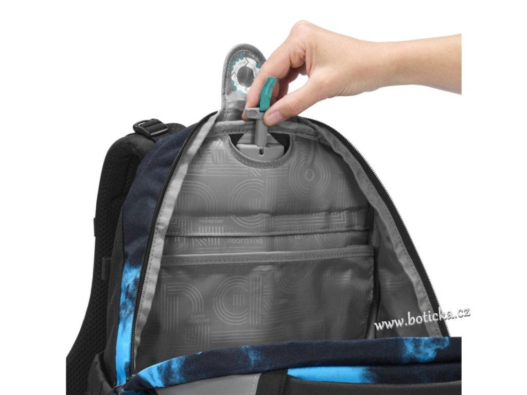 - možnost plynulého výškového nastavení ramenních popruhů pomocí otočného mechanismu uvnitř aktovky zajišťuje