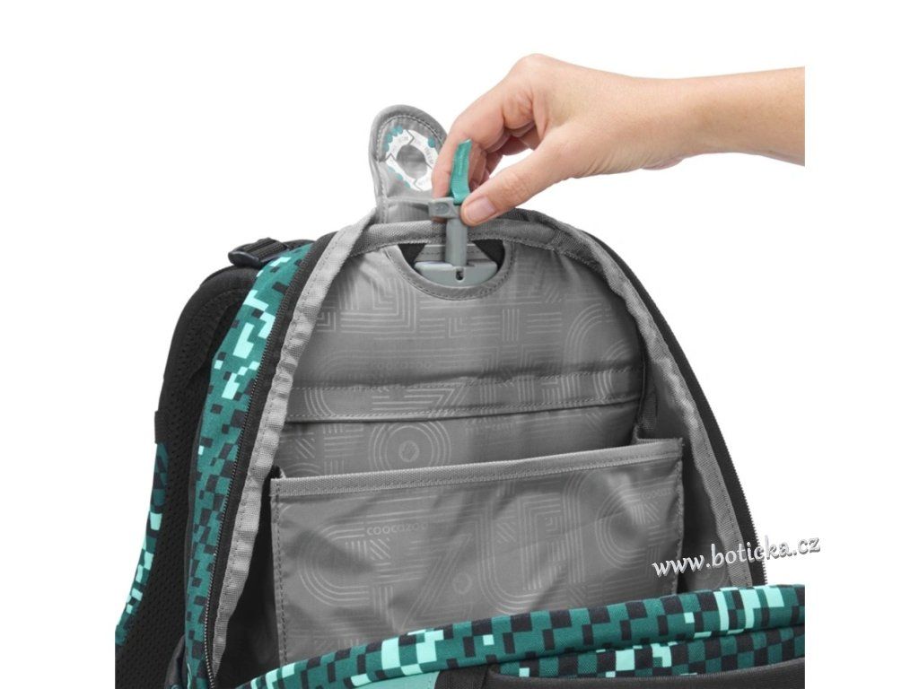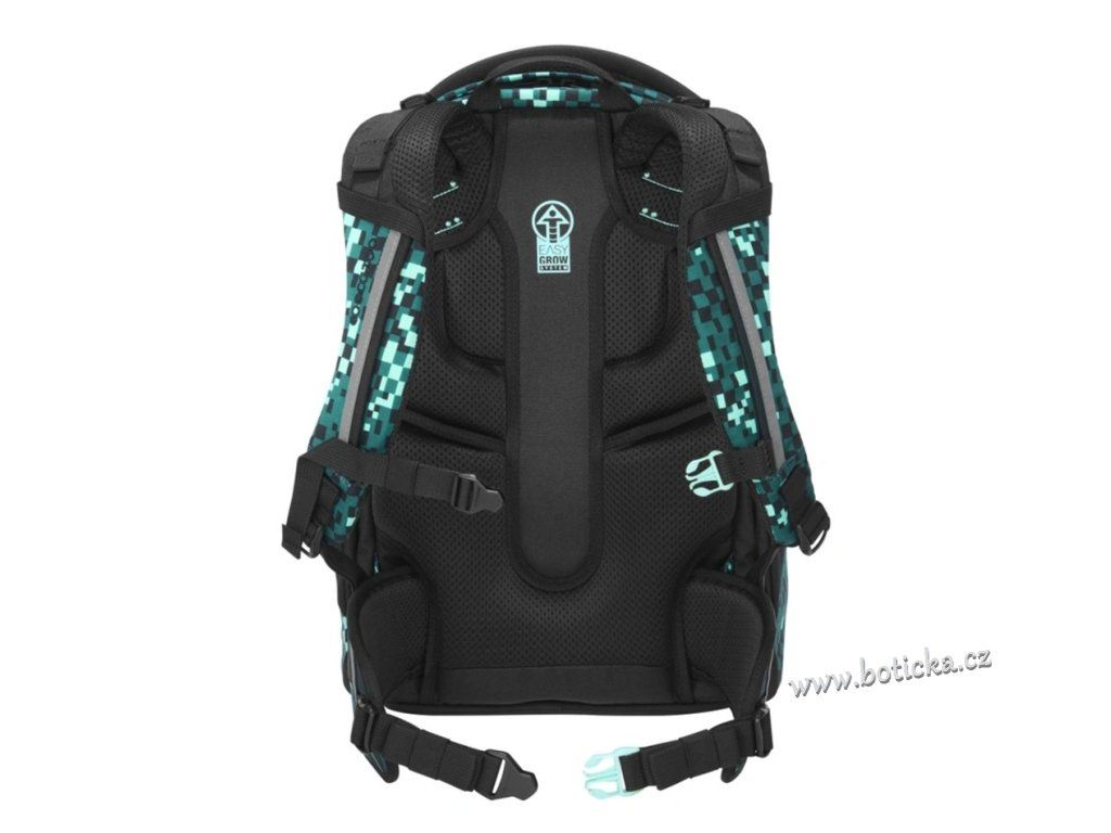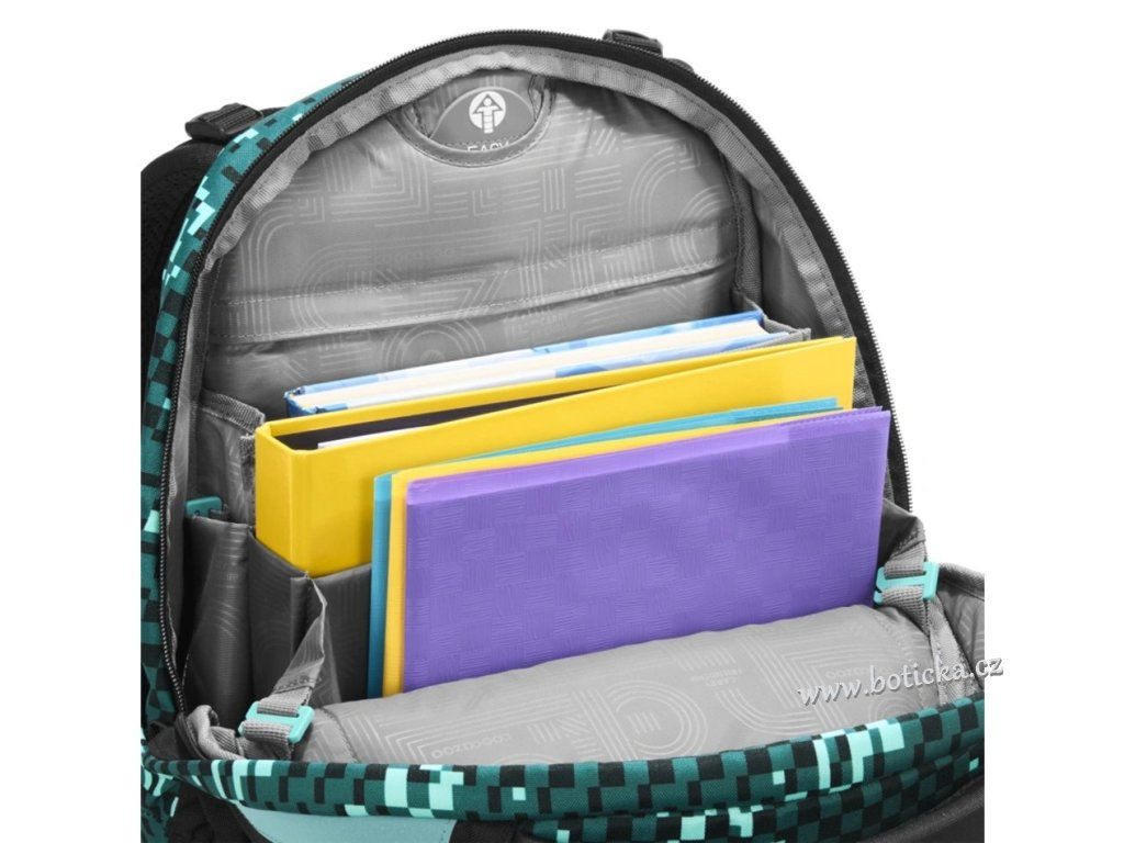 - možnost plynulého výškového nastavení ramenních popruhů pomocí otočného mechanismu uvnitř aktovky zajišťuje