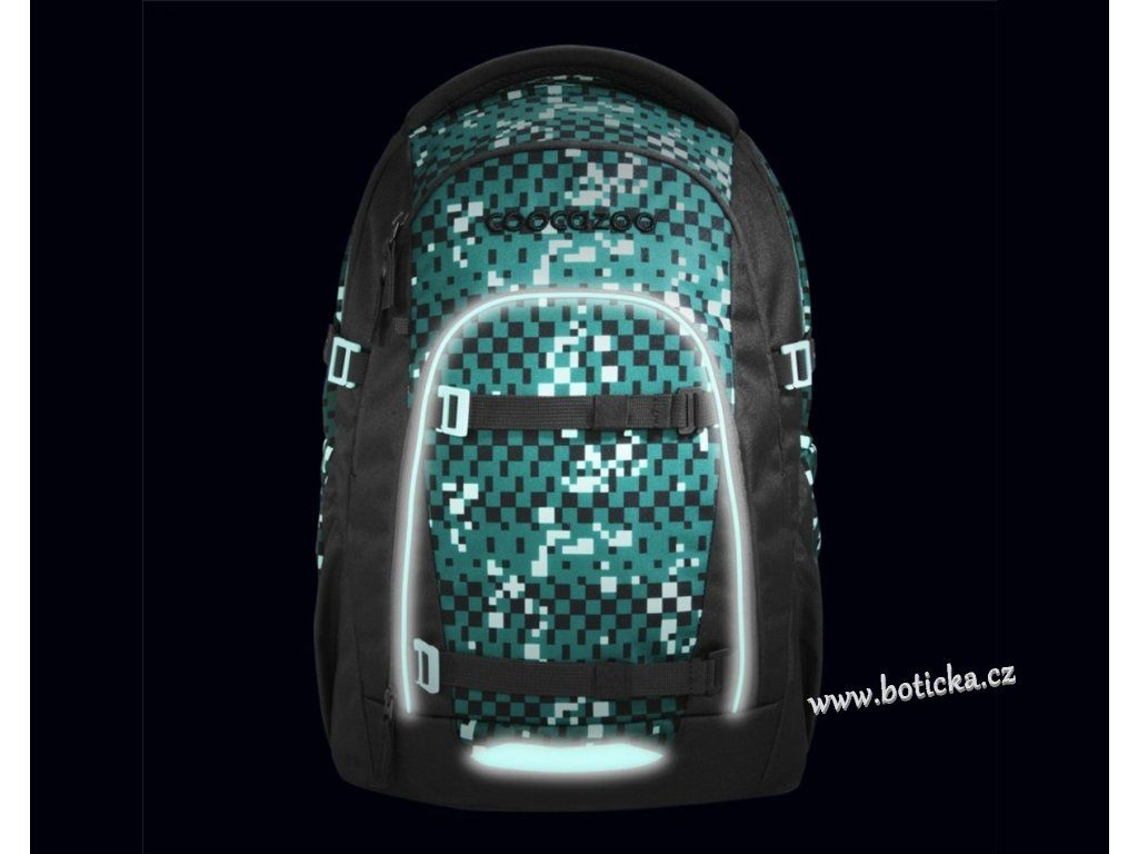 - 2 upevňovací pásky na přední straně batohu pro upevnění např. skateboardu, bundy nebo helmy nebo reflexních pásků