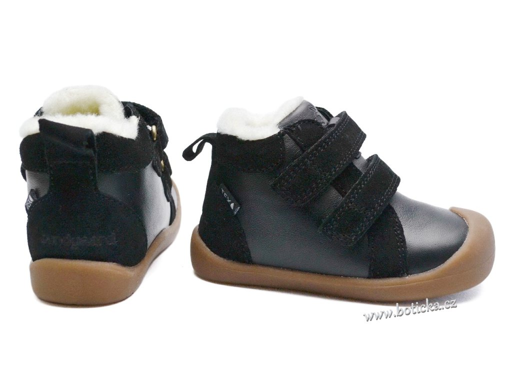 Dětské zimní zateplené kožené boty Bungaard Bloom tex mají tenkou podrážku, které se krásně přizpůsobí i začínajícím chodcům. Boty jsou vyššího střihu a mají mezi gumovou podrážkou a vnitřní stélkou boty měkkou vrstvu, jež nelze odstranit (má pouze několik mm). Gumová podrážka je přetažena přes přední část boty do okopové špice, která chrání botičky před rychlým okopáním. Stélka má spodní stranu opatřenou Al folií, která slouží jako další termoizolační vrstva a udržuje teplo v botkách. Díky široké přední části chodidla, která umožňuje přirozený pohyb prstů, a úzké patě, která zajišťuje bezpečné uchycení, je Birdie prostorná pro střední i mírně širší chodidla, nevadí ani mírně vyšší nárt. Rovná plochá podešev podporuje přirozený došlap a odval chodidla.