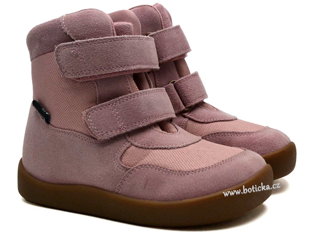Dětské zimní zateplené kožené boty Bungaard Bobbie tex mají tenkou podrážku, které se krásně přizpůsobí i začínajícím chodcům. Boty jsou vyššího střihu a mají mezi gumovou podrážkou a vnitřní stélkou boty měkkou vrstvu, jež nelze odstranit (má pouze několik mm). Gumová podrážka je přetažena přes přední část boty do okopové špice, která chrání botičky před rychlým okopáním. Stélka má spodní stranu opatřenou Al folií, která slouží jako další termoizolační vrstva a udržuje teplo v botkách. Díky široké přední části chodidla, která umožňuje přirozený pohyb prstů, a úzké patě, která zajišťuje bezpečné uchycení, je Birdie prostorná pro střední i mírně širší chodidla, nevadí ani mírně vyšší nárt. Rovná plochá podešev podporuje přirozený došlap a odval chodidla.