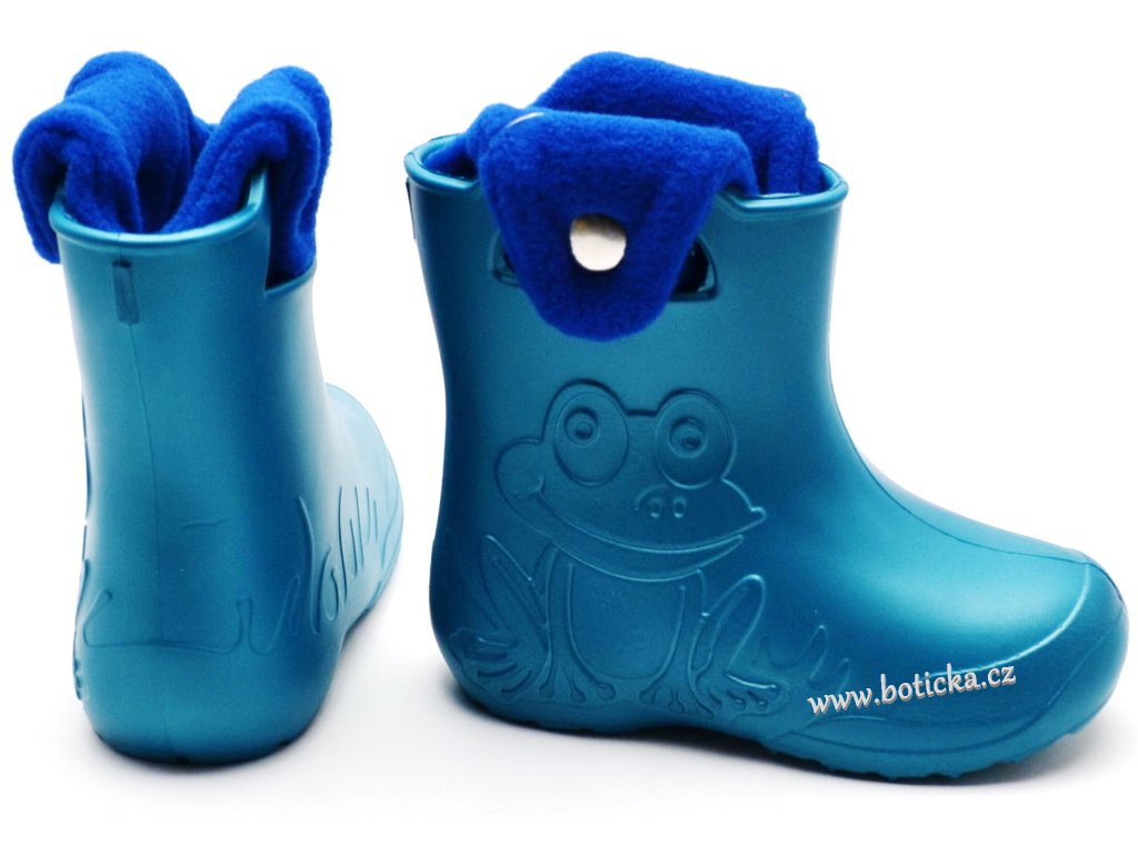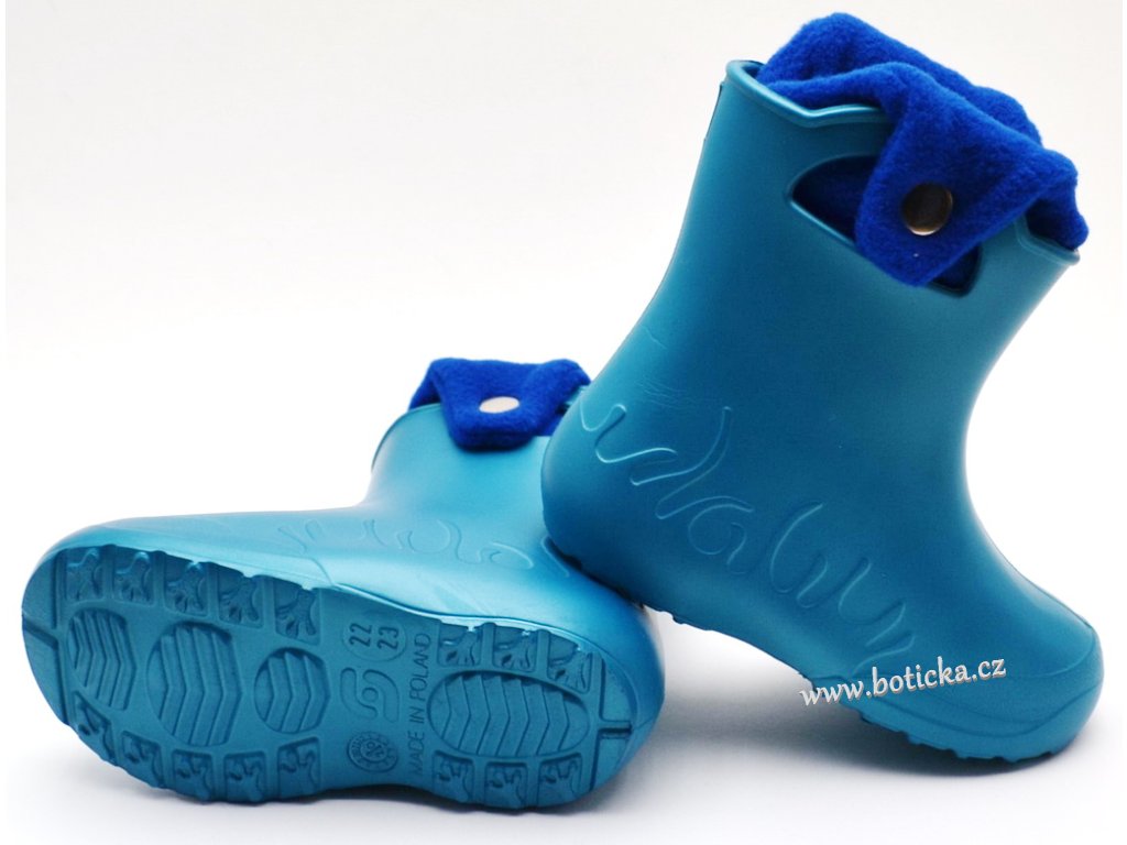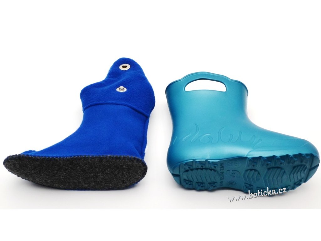 Gumáky / sněhule s vnitřní vyjímatelnou fleecovou vložkou (materiál vložky je certifikován pro použití i u nejmenších dětí). Boty jsou mrazuvzdorné, s vnitřní vložkou použitelné až do -10°C. Boty jsou vyrobeny z výjimečně lehkého flexibilního materiálu EVA, jejich váha je přibližně 200 gramů. V rámci gumáků / sněhulí jsou jedinečné zúženou zpevněnou patou, díky které v těchto botách budou hezky chodit i nejmenší děti. Vnitřní vložka je pratelná v pračce na teplotu maximálně 50°C. Na jaře lze vložku vyndat, nahradit klasickou stélkou a děti mají na zbytek jara a léto holinky.