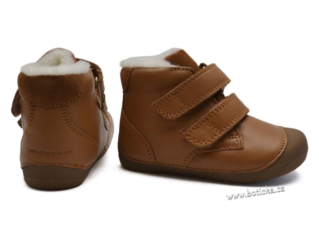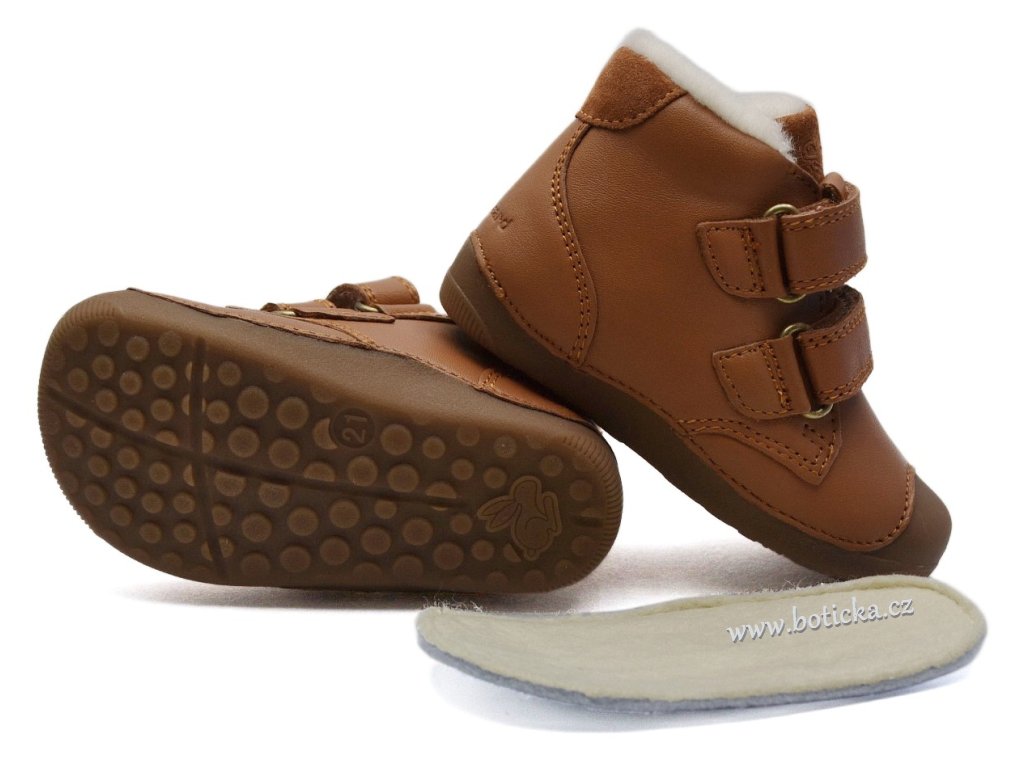 Dětské zimní zateplené kožené boty Bungaard Petit Velcro mají tenkou podrážku, které se krásně přizpůsobí i začínajícím chodcům. Boty jsou vyššího střihu a mají mezi gumovou podrážkou a vnitřní stélkou boty měkkou vrstvu, jež nelze odstranit (má pouze několik mm). Gumová podrážka je přetažena přes přední část boty do okopové špice, která chrání botičky před rychlým okopáním. Stélka má spodní stranu opatřenou Al folií, která slouží jako další termoizolační vrstva a udržuje teplo v botkách.