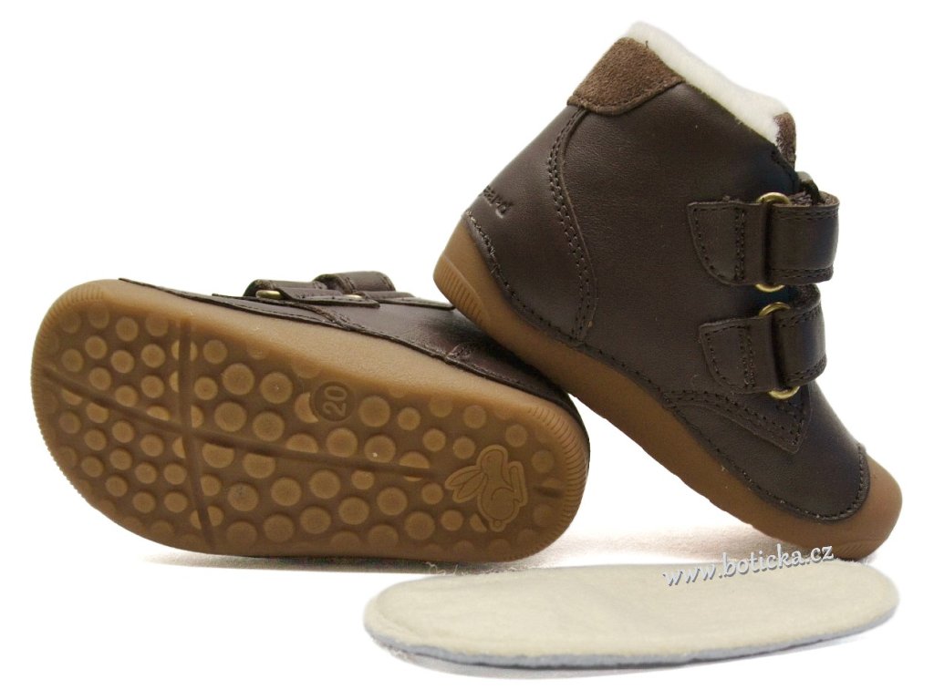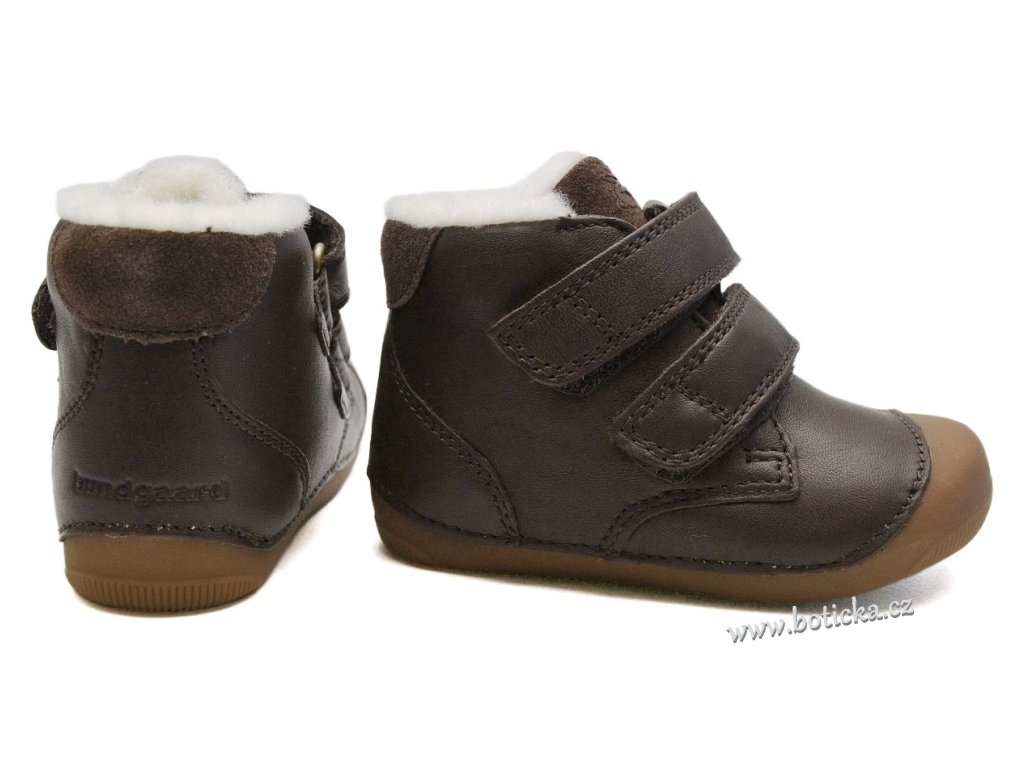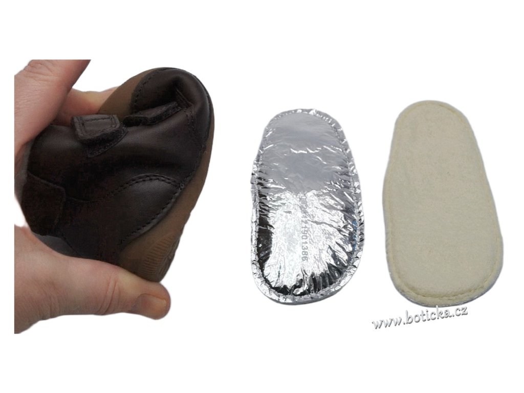 Dětské zimní zateplené kožené boty Bungaard Petit Velcro mají tenkou podrážku, které se krásně přizpůsobí i začínajícím chodcům. Boty jsou vyššího střihu a mají mezi gumovou podrážkou a vnitřní stélkou boty měkkou vrstvu, jež nelze odstranit (má pouze několik mm). Gumová podrážka je přetažena přes přední část boty do okopové špice, která chrání botičky před rychlým okopáním. Stélka má spodní stranu opatřenou Al folií, která slouží jako další termoizolační vrstva a udržuje teplo v botkách.