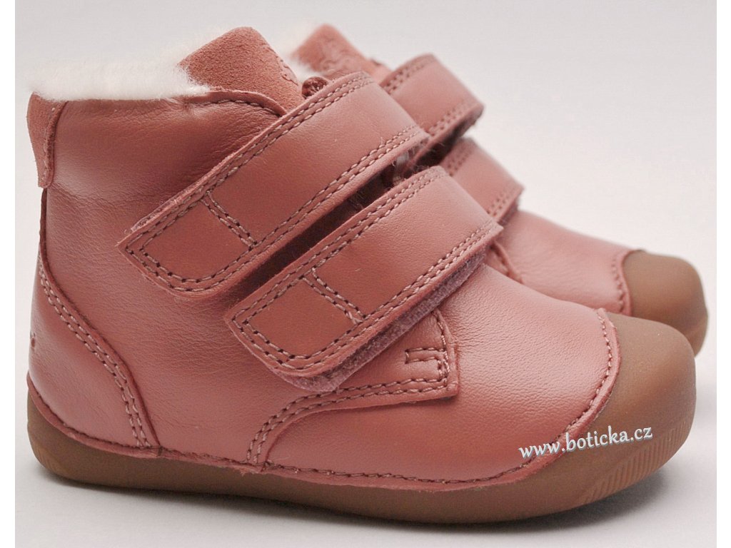 Dětské zimní zateplené kožené boty Bungaard Petit Velcro mají tenkou podrážku, které se krásně přizpůsobí i začínajícím chodcům. Boty jsou vyššího střihu a mají mezi gumovou podrážkou a vnitřní stélkou boty měkkou vrstvu, jež nelze odstranit (má pouze několik mm). Gumová podrážka je přetažena přes přední část boty do okopové špice, která chrání botičky před rychlým okopáním. Stélka má spodní stranu opatřenou Al folií, která slouží jako další termoizolační vrstva a udržuje teplo v botkách.