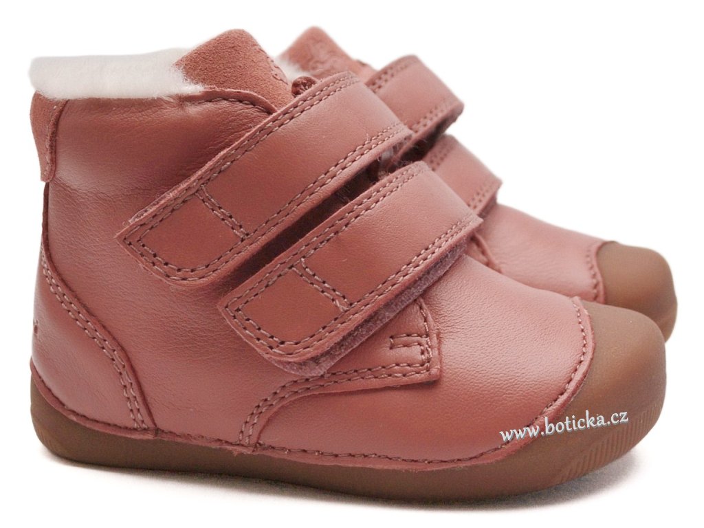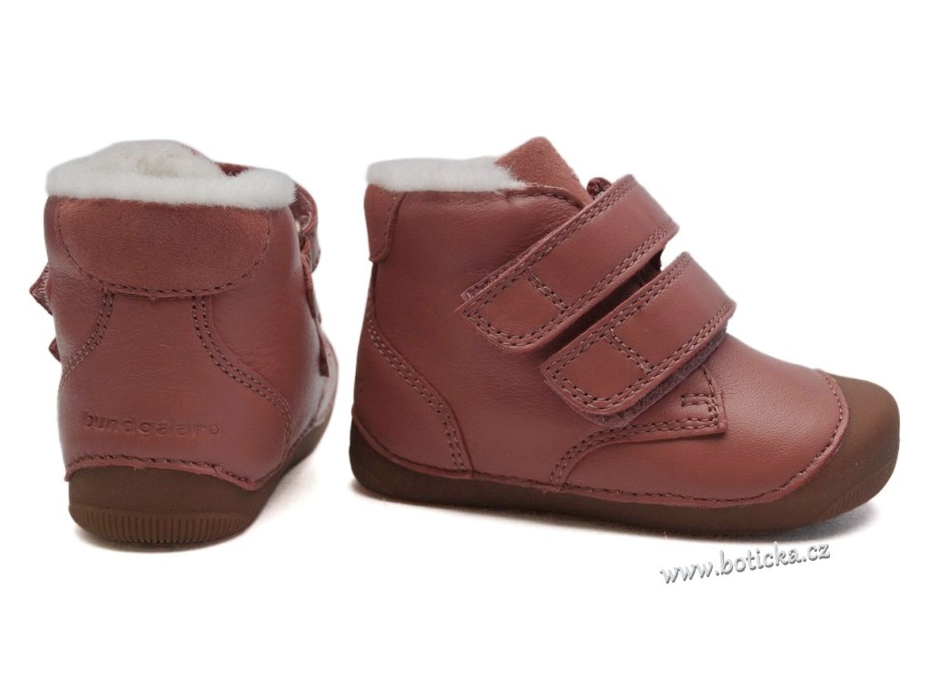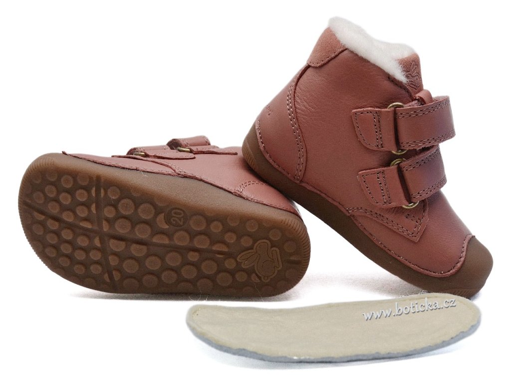 Dětské zimní zateplené kožené boty Bungaard Petit Velcro mají tenkou podrážku, které se krásně přizpůsobí i začínajícím chodcům. Boty jsou vyššího střihu a mají mezi gumovou podrážkou a vnitřní stélkou boty měkkou vrstvu, jež nelze odstranit (má pouze několik mm). Gumová podrážka je přetažena přes přední část boty do okopové špice, která chrání botičky před rychlým okopáním. Stélka má spodní stranu opatřenou Al folií, která slouží jako další termoizolační vrstva a udržuje teplo v botkách.