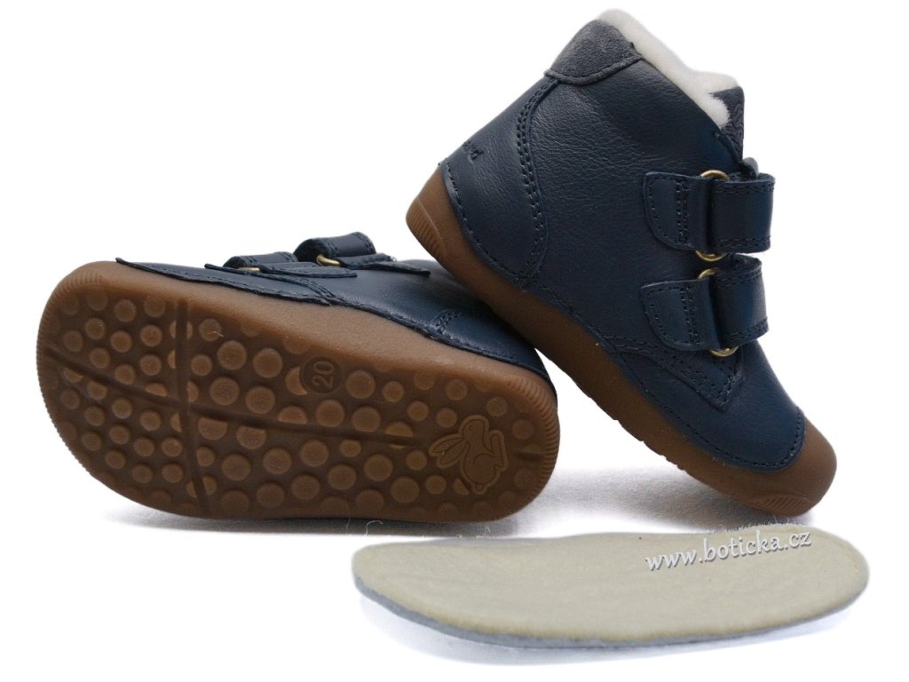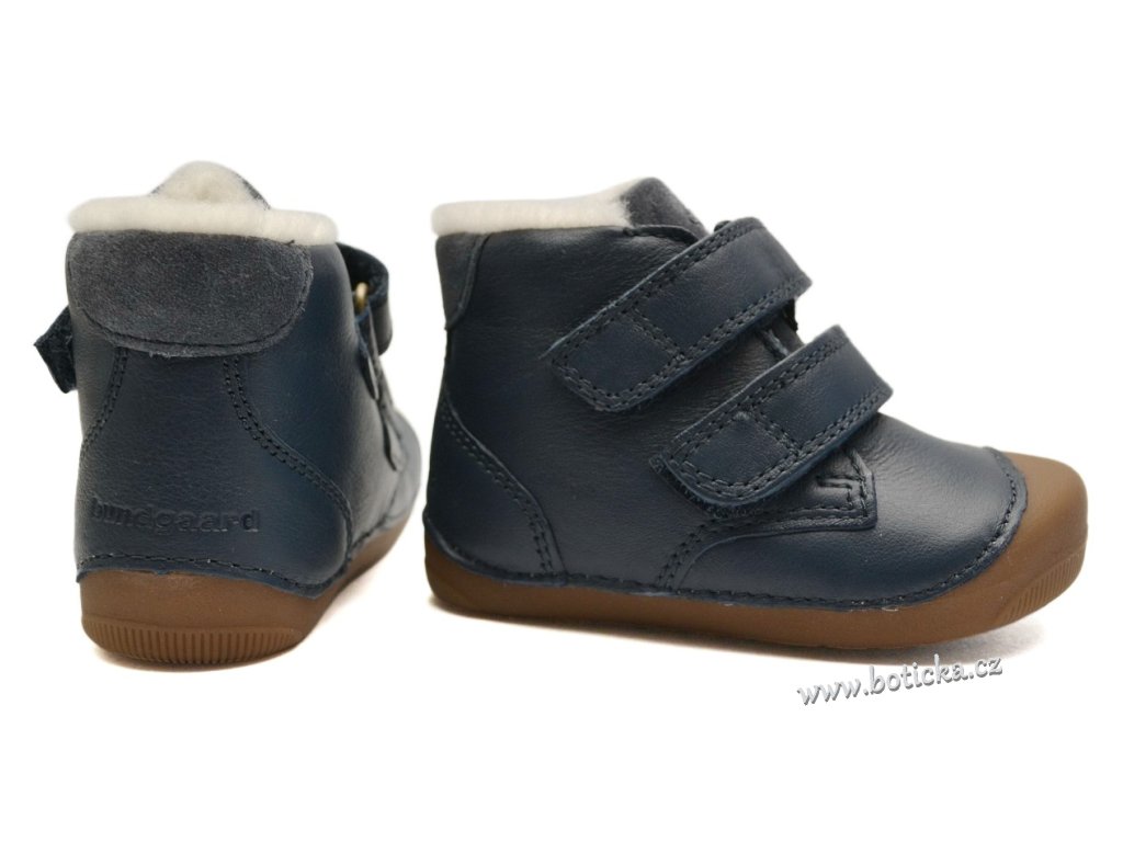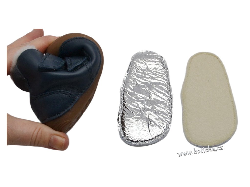 Dětské zimní zateplené kožené boty Bungaard Petit Velcro mají tenkou podrážku, které se krásně přizpůsobí i začínajícím chodcům. Boty jsou vyššího střihu a mají mezi gumovou podrážkou a vnitřní stélkou boty měkkou vrstvu, jež nelze odstranit (má pouze několik mm). Gumová podrážka je přetažena přes přední část boty do okopové špice, která chrání botičky před rychlým okopáním. Stélka má spodní stranu opatřenou Al folií, která slouží jako další termoizolační vrstva a udržuje teplo v botkách.