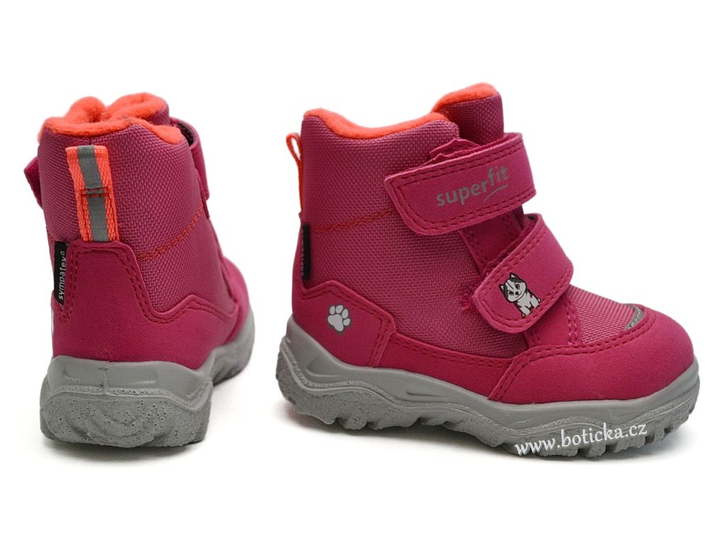 Zimní vycházková nepromokavá obuv SUPERFIT, zateplená, lehká, s vyjímatelnou, lehce zateplenou stélkou. Zapínání na dva suché zipy pro snadnější obutí. Nepromokavé díky membráně SYMPATEX Warm.