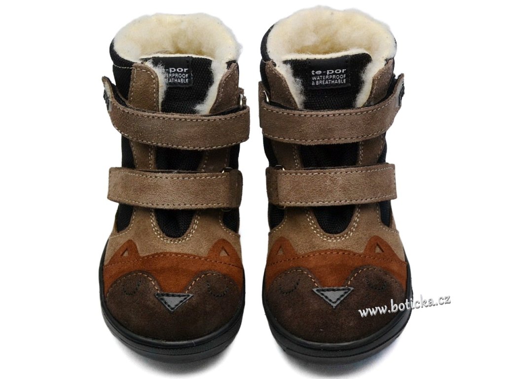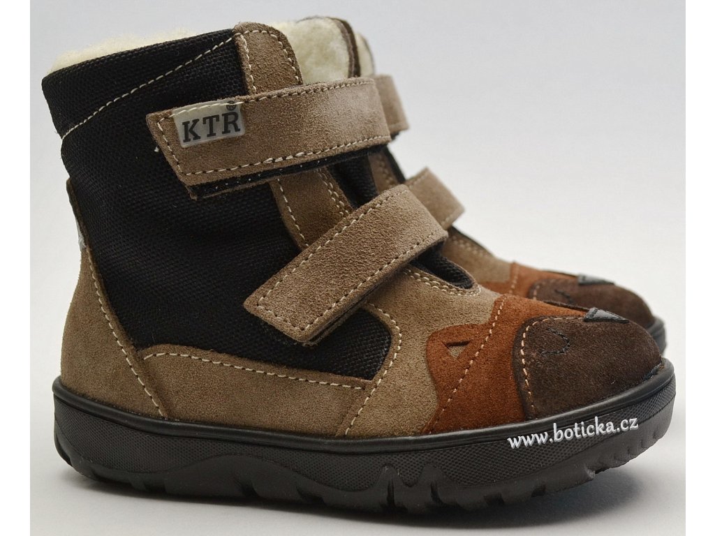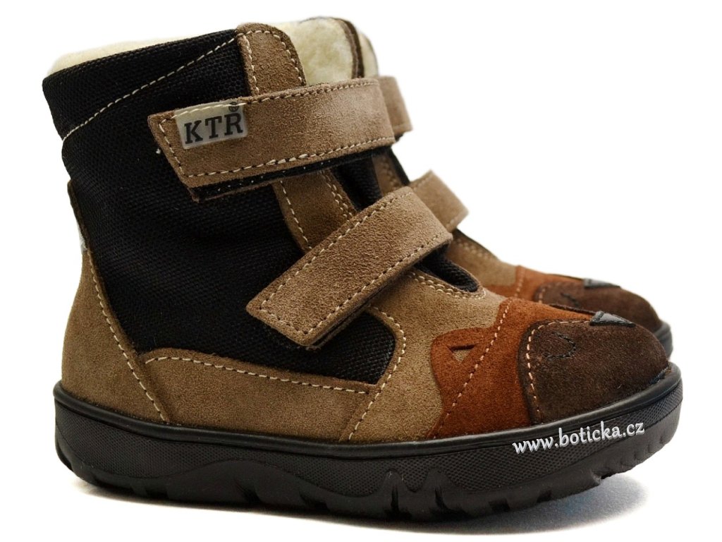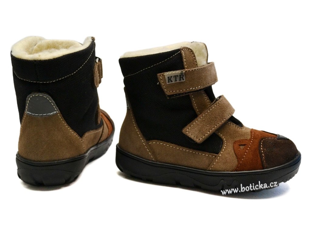 Dětská zimní zateplená vycházková obuv KTR s TEPOR membránou. Botičky jsou širší v místě prstů, ohebné a lehké. Díky kvalitní membráně vydrží jakékoliv mokro až do výše membrány. Díky membráně TEPOR jsou botičky nepromokavé! Při našem testování byly botky i po dvou hodinách permanentního namočení uvnitř naprosto suché !!! Impregnací obuvi membránu ještě více podpoříte. Kvůli všitému jazyku nejsou vhodné pro děti s vysokým nártem, děti botu neprozují!!!